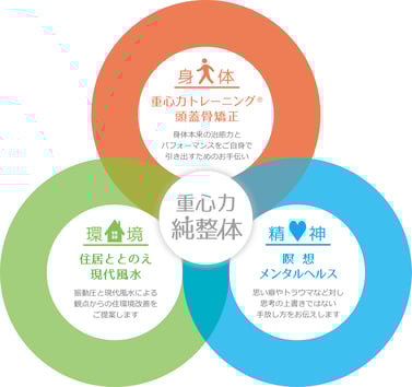 重心力純整体では重心力トレーニングのほかに、住環境と精神をととのえるサポートを行っています。